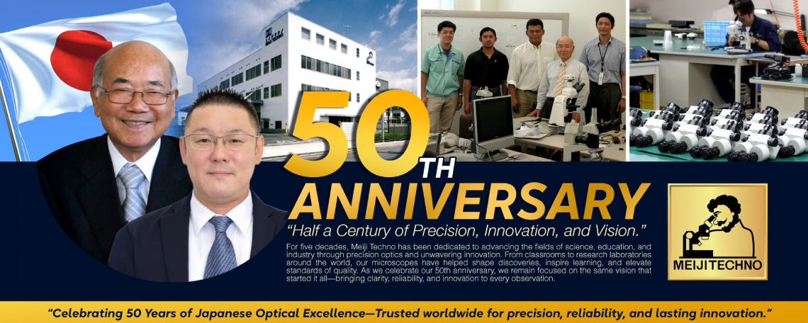 С 1964 года компания Meiji Techno является надежным партнером для школ, лабораторий и промышленных предприятий. Мы поддерживаем наши продукты гарантиями и пожизненным обслуживанием клиентов. Нам недостаточно просто заявить о качестве — мы это доказываем. Поэтому каждый микроскоп тщательно проверяется перед тем, как покинуть наш завод в Сайтаме, Япония. Мы гарантируем, что в вашу лабораторию, учебное заведение или производственное предприятие поступит только идеальный прибор.